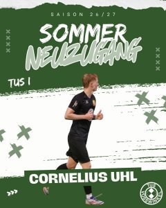 Dazu freut sich der TuS Voßwinkel auf Cornelius Uhl, der ab Sommer als Neuzugang zur ersten Mannschaft stoßen wird. Der 21-jährige Stürmer spielt aktuell beim A-Ligisten DJK Bösperde und wird dem Trainerteam künftig zusätzliche offensive Optionen bieten.