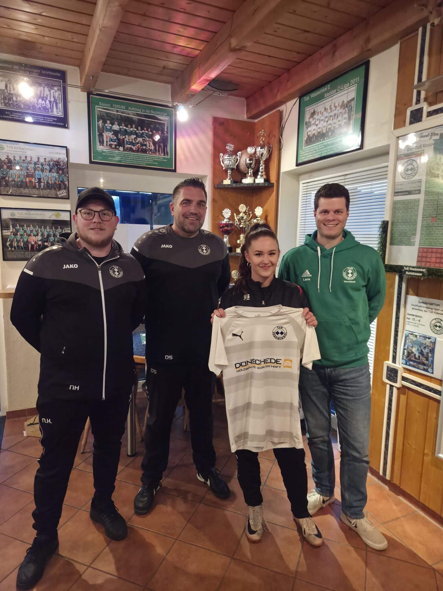 (v. l. n. r.): Neu-Co-Trainer Nico Herrmann, Neu-Trainer Dominik Schmitz, Neuzugang Lea Sophie Steffen, Lars Kleinhorst (Mitglied sportliche Leitung)